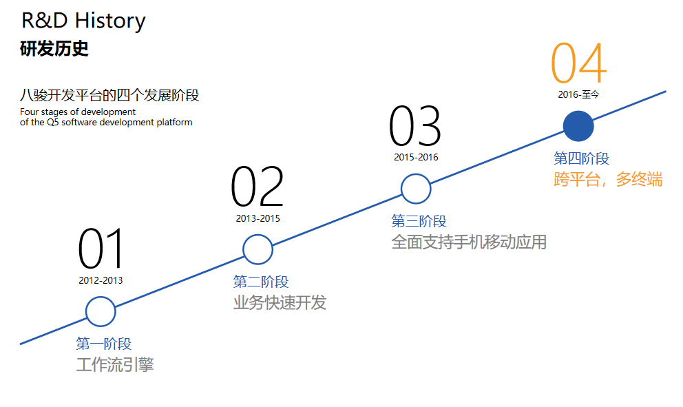 “八駿開發(fā)平臺(tái)”是專業(yè)的OA、CRM快速開發(fā)平臺(tái),經(jīng)過了“工作流引擎、可插拔構(gòu)件、移動(dòng)平臺(tái)、模型驅(qū)動(dòng)開發(fā)”四個(gè)階段近十年的功能迭代。