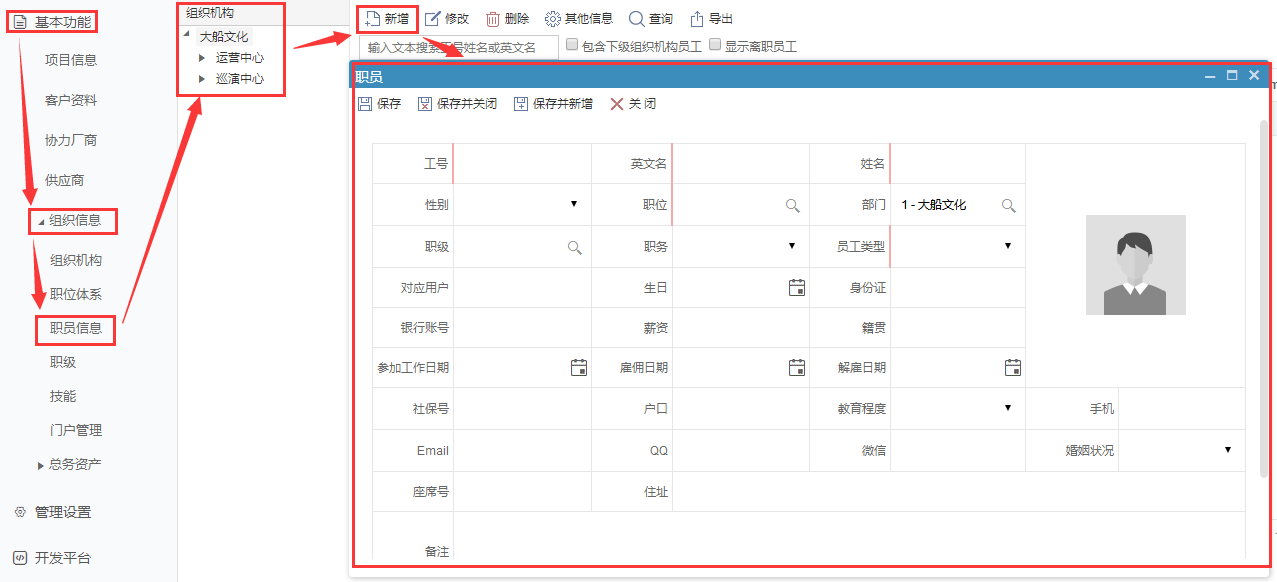 三、在職員信息頁面新增各部門職員信息