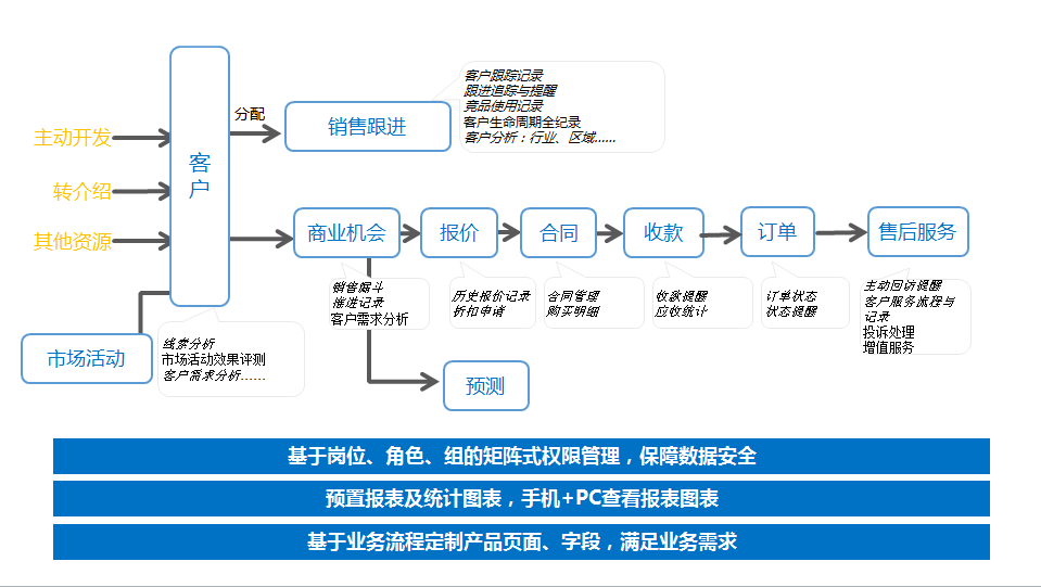 隨著CRM的概念在企業中普及,對市場、營銷、客戶的管理也越來越深入,CRM所推崇的管理模式也被企業所認可和接受。在CRM中,有一個重要的管理理念,就是銷售自動化,將一些銷售的行為,規范化管理,部分原來人為的行為動作,通過軟件的自動化流程來進行,更快的推動銷售的流程進展,減輕銷售人員的工作壓力。
